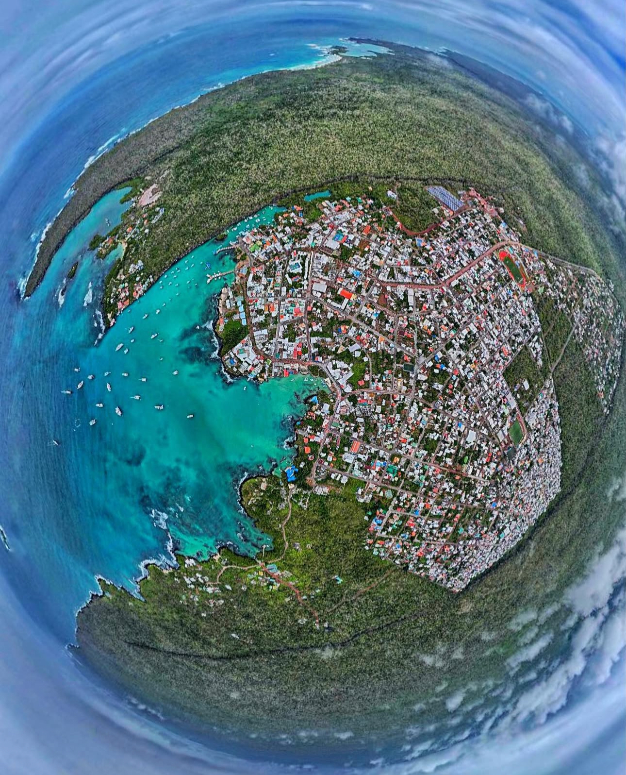 Puerto Ayora es la ciudad más grande del archipiélago ubicada en la costa sur, esta localidad no es solo un centro logístico, sino un santuario costero donde la vida urbana y la naturaleza virgen convergen en una armonía casi imposible. Aquí, los visitantes son recibidos por una biodiversidad que parece ignorar la presencia humana: lobos marinos descansando en los bancos públicos, iguanas marinas cruzando los senderos de piedra y pelícanos vigilando el mercado de pescado.